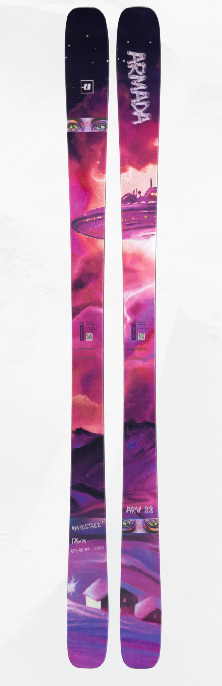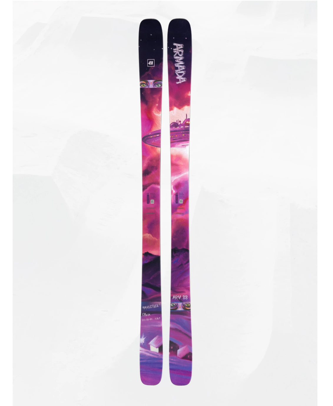 The ARV 88 is built on a snappy poplar chassis that delivers maximum pop and edge hold so you can carve hard and send it deep with lightweight stability all over the mountain. A touch of tip and tail rocker adds variable condition versatility to the package.