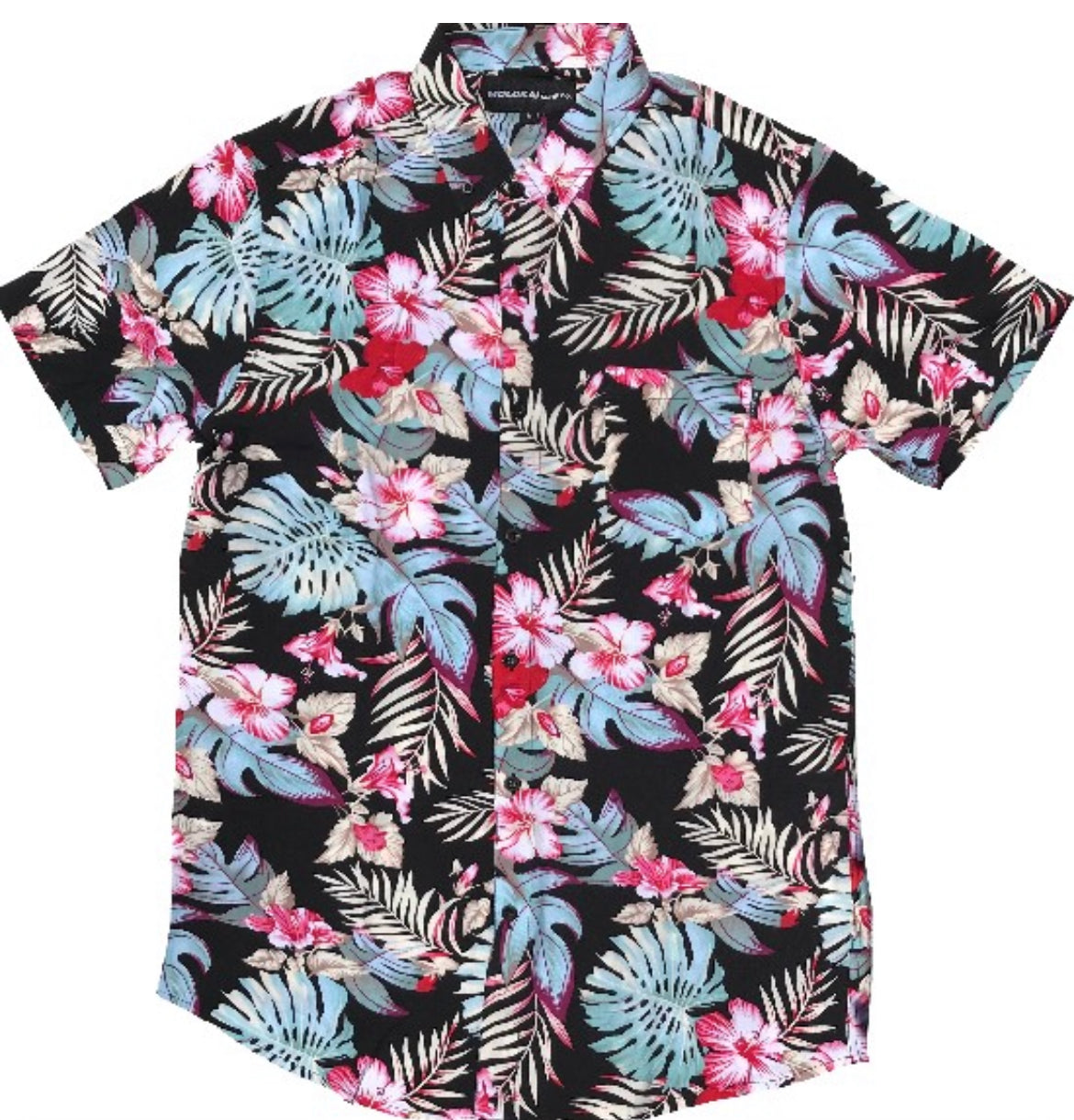 Molokai / Lanikai Vintage 100% Rayon Shirt -Black Classic Tropics & Flowers