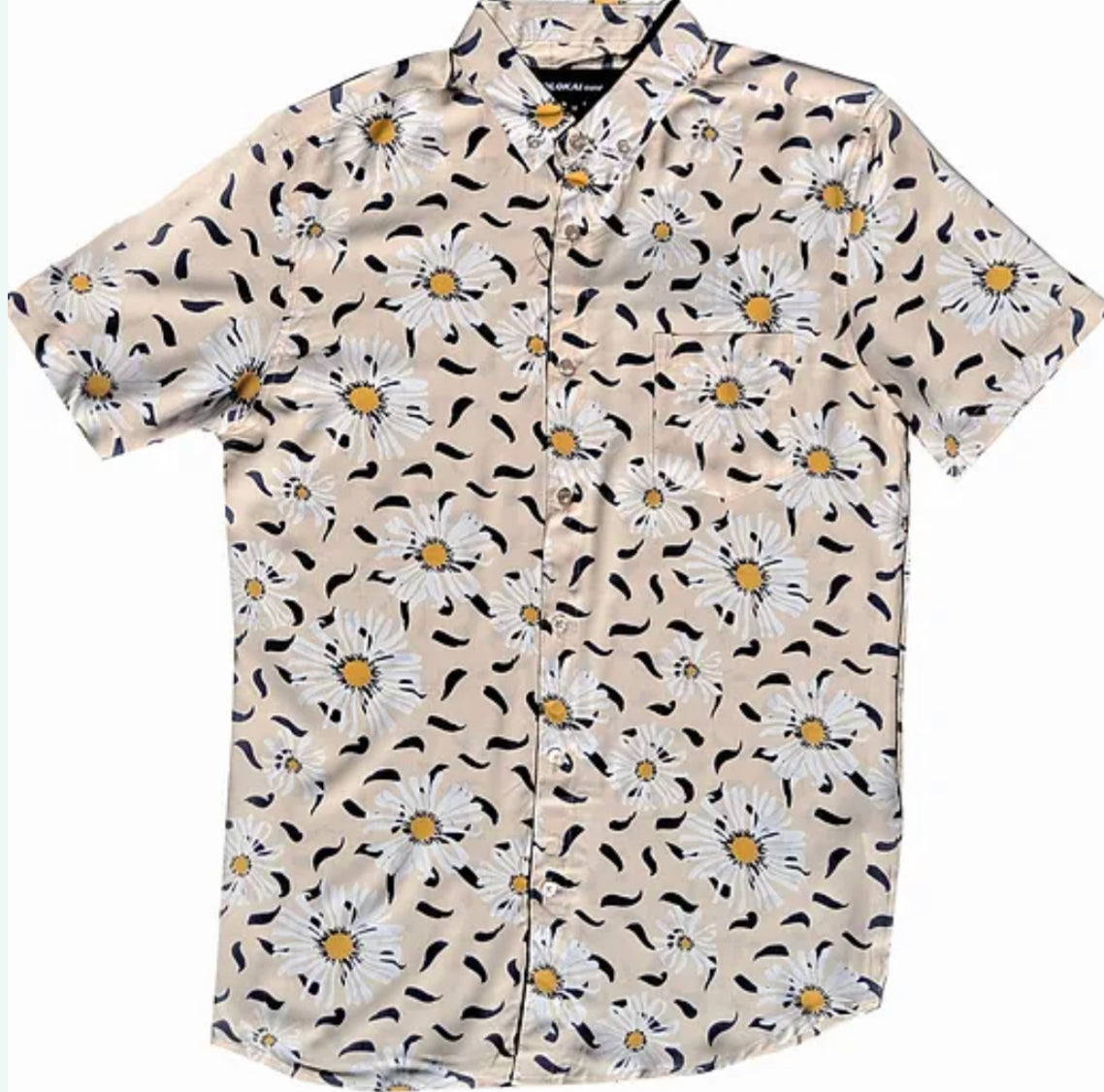 Molokai / Lanikai Vintage 100% Rayon Shirt- beige daisy