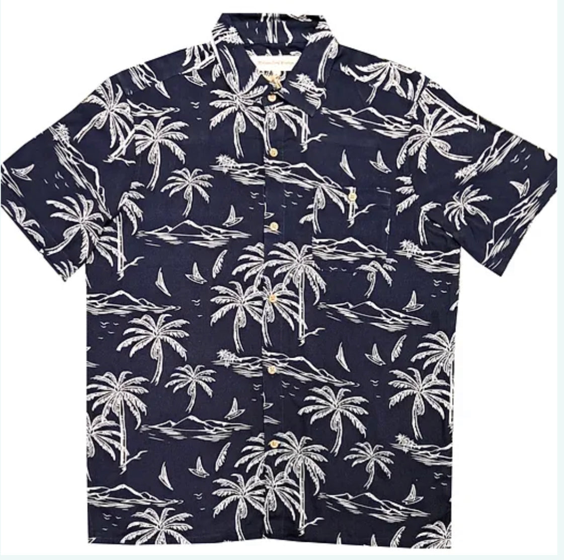 Molokai / Lanikai Vintage 100% Rayon Shirt- Navy With Islands n Palms