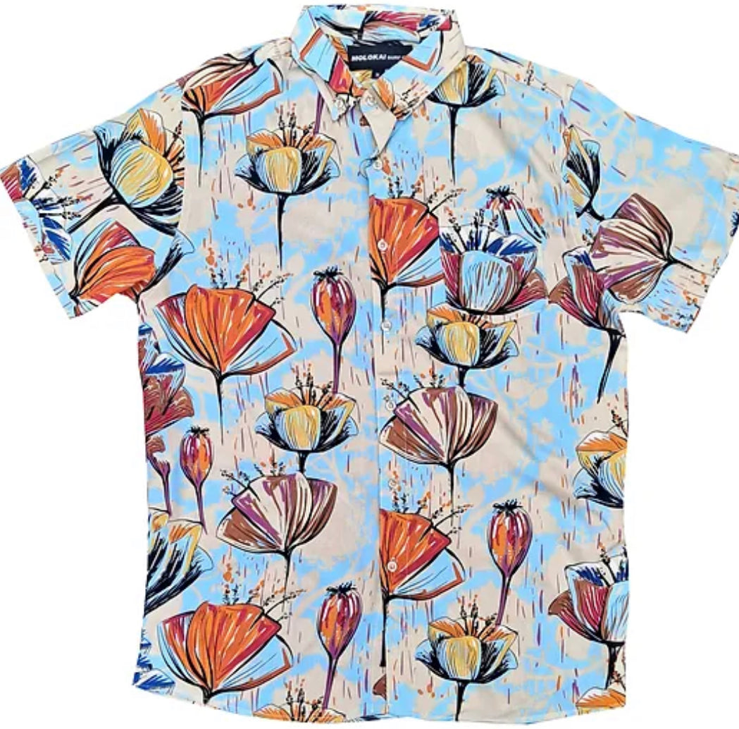 Molokai / Lanikai Vintage 100% Rayon Shirt- with vintage flowers