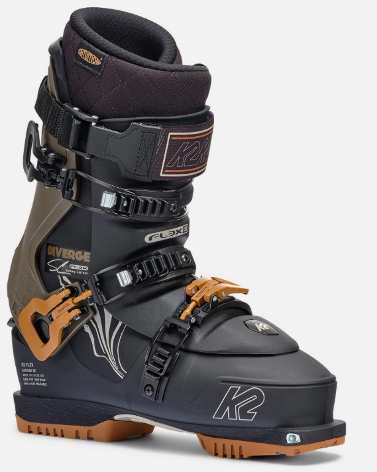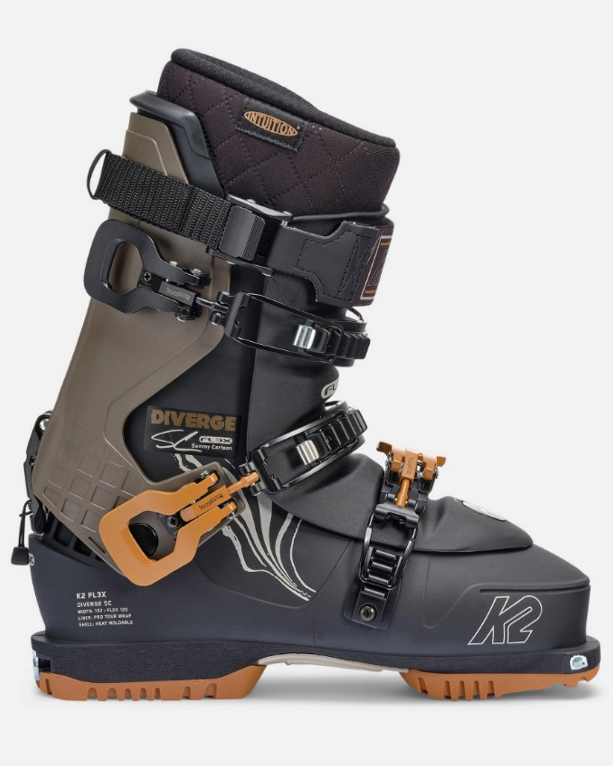 The FL3X Diverge SC was meticulously designed to meet the needs of Sammy Carlson’s unique style. Whether Sammy’s boosting backcountry kickers, hopping on the sled or preparing to drop into a technical line, the Diverge SC delivers. Equipped with an Intuition Pro Tour Wrap, 130 Flex Tongue, and lightweight Diverge Tour 3-Piece Shell. The Diverge SC is the tool you’ve been looking for.