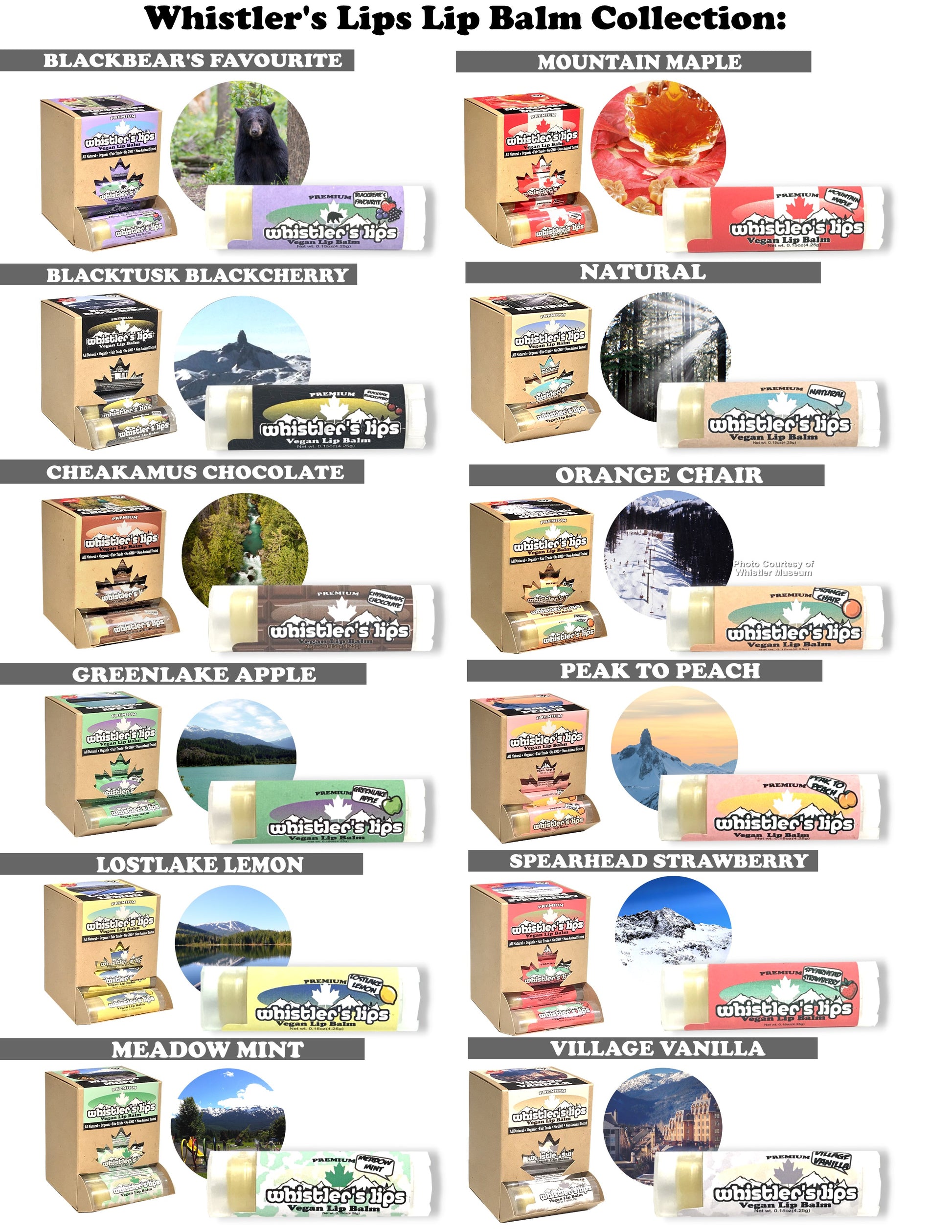 Whistler's Lips Lip Balms are an all natural, vegan, and made from raw, organic, fair trade ingredients. Hand made with love in whistler by a local mother. Whistler Lip's lip balms are made for everyone to enjoy.