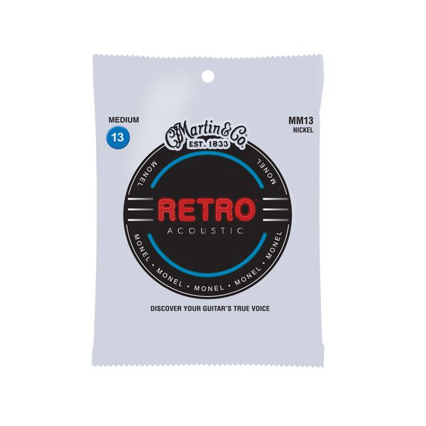 Martin Retro® strings are the real deal. Not an imitation. With Martin Retro® strings, you get one tough set that offers true, consistent tone and sounds like nothing else on the market. Martin’s solid nickel/copper alloy blend provides a reduced pick attack that allows the guitar’s tonewoods to be heard, not overshadowed. Martin’s proprietary Monel wrap wire is naturally corrosion resistant, so you can play them for a long time with nothing to get in the way of your music. Discover your guitar’s true voice. Retro® strings offer enhanced longevity with warm natural tone, and they sound great plugged i
