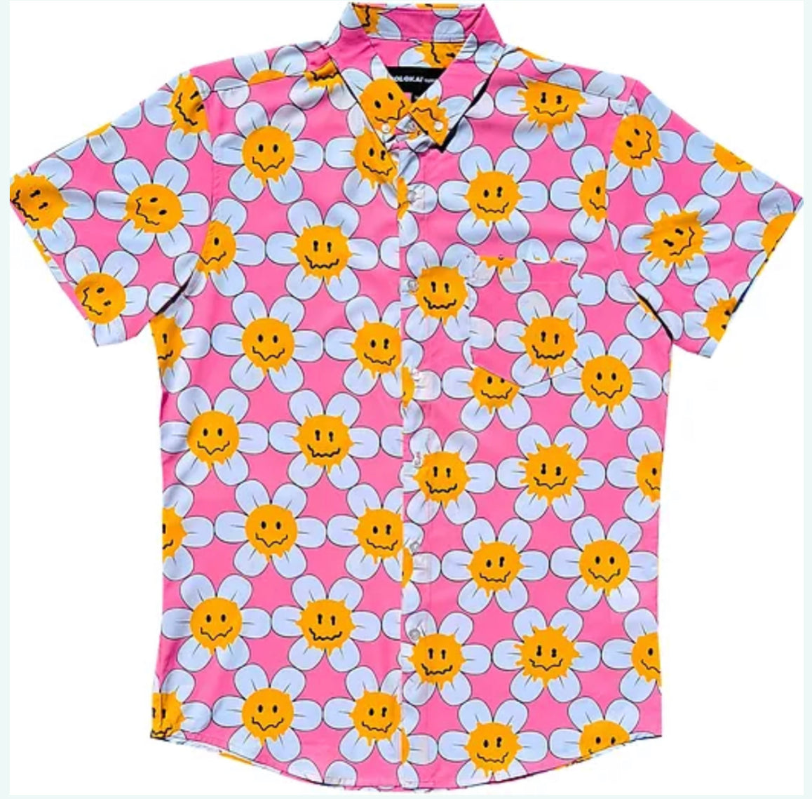 Molokai / Lanikai Vintage 100% Rayon Shirt- pink happy daisy